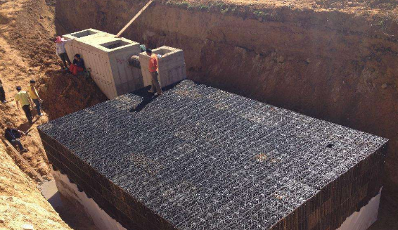 當(dāng)降雨量大過城市排水量時,啟動區(qū)域雨水戰(zhàn)略儲備系統(tǒng),雨水快速流入模塊池內(nèi),大量存儲雨水,待暴雨過去后再排放到指定出口或提前進行預(yù)排洪,降低城市排水壓力,從而根本解決城市洪澇災(zāi)害。